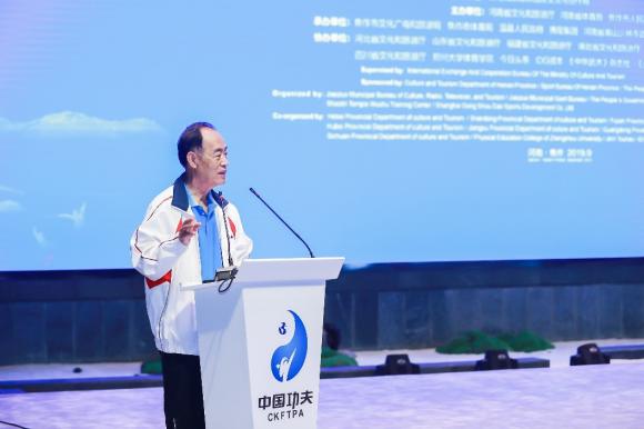 河南省文化和旅游厅厅长姜继鼎在致辞中表示,河南是中华民族和中华文明的重要发祥地之一,孕育了太极和少林两大功夫流派。温县陈家沟被中国武术协会命名为太极圣地,全球150多个国家和地区数亿人习练;每年到陈家沟学拳的人数达5万余人次,其中外籍学员8千余人次。禅宗祖庭少林寺被称为中国功夫发源地,每年有10万学生到登封习练少林拳,少林寺连续6年代表国家接纳非洲学员学习功夫,每年到少林寺学拳的人数达到12.8万人次。此外,围绕“中国功夫 老家河南”主题,河南省推出了中国功夫体验游、中原山水游等多条精品线路,中国功夫已逐渐成为继长城、熊猫之后的第3张中国旅游名片。