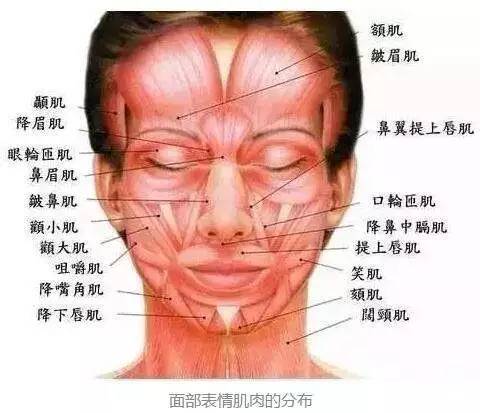 面部表情肌一共有42块。面部肌肉每一块的拉扯都会让表情产生细微的变化。嘴巴打开和拉伸的幅度,眼睛上扬的弧度,苹果肌上扬的度,都会产生不同的表情效果